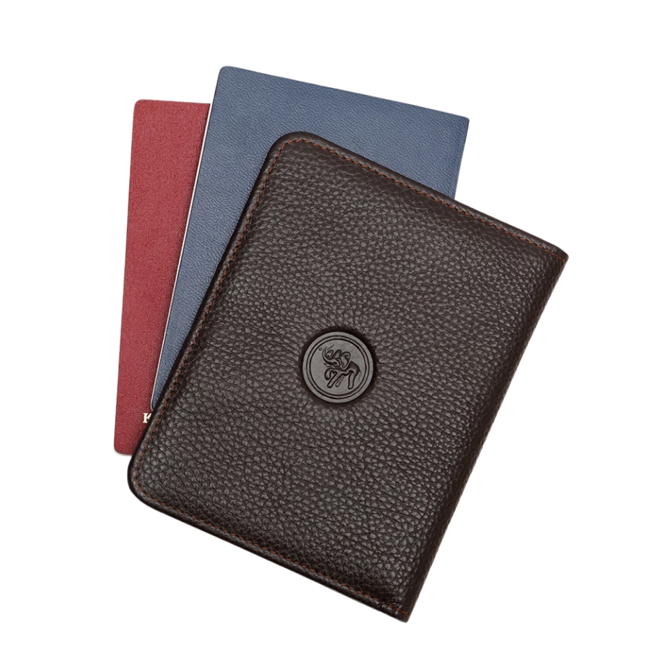 כיסוי דרכון יוקרתי מבית עמנואל, בעיצוב קלאסי ואלגנטי, עשוי עור נאפה איטלקי 100% אמיתי. הכיסוי תפור בקפידה, שומר על צורה שטוחה ומציע שילוב מושלם של עמידות ויוקרה. מאפשר אחסון של שני דרכונים סגורים ותאים נוספים לכרטיסים חיוניים – אידיאלי לנסיעות עסקים, חופשות וטיולים ברחבי העולם.