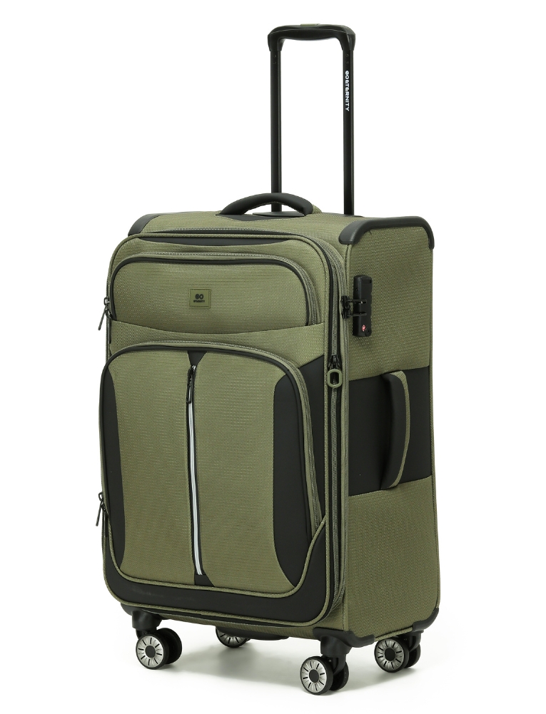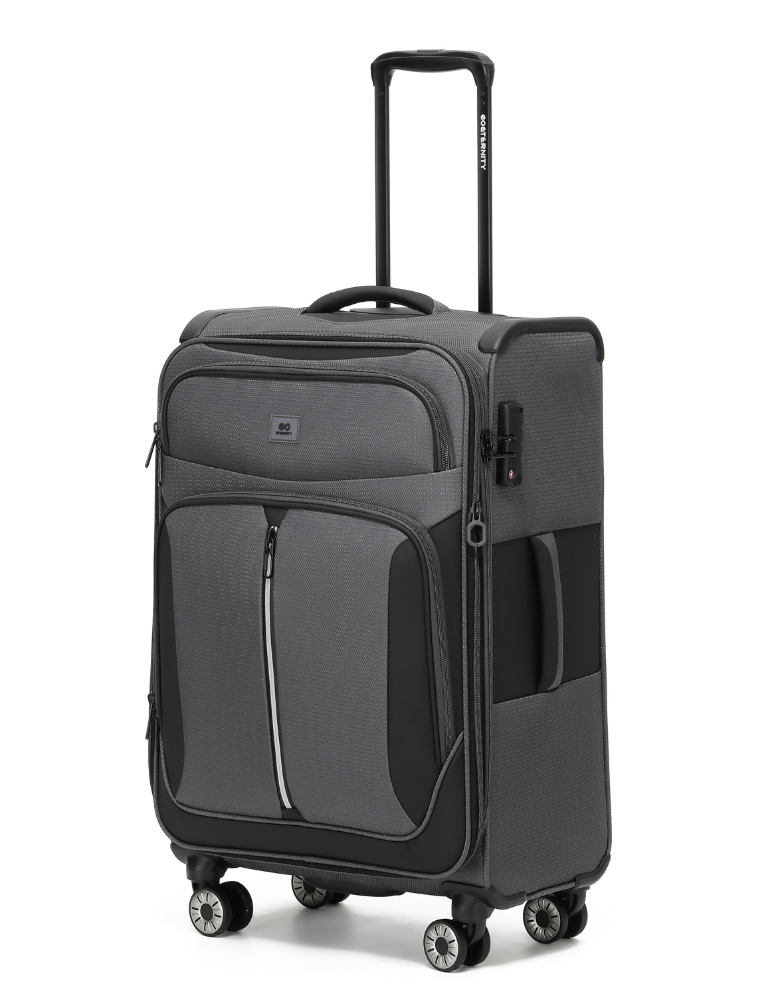 המזוודה הבינונית מדגם ETERNITY TUCSON מעניקה נפח מרשים עם ניידות מושלמת. מבנה הבד החזק בשילוב הגב הקשיח שומר על יציבות ועמידות לאורך שנים, גם בנסיעות אינטנסיביות. מערכת 4 הגלגלים הכפולים מבטיחה תנועה חלקה ב־360 מעלות, מנעול TSA מספק אבטחה מלאה, והתאים הפנימיים מאפשרים אריזה נוחה, מסודרת ויעילה לנסיעות בינוניות וארוכות.