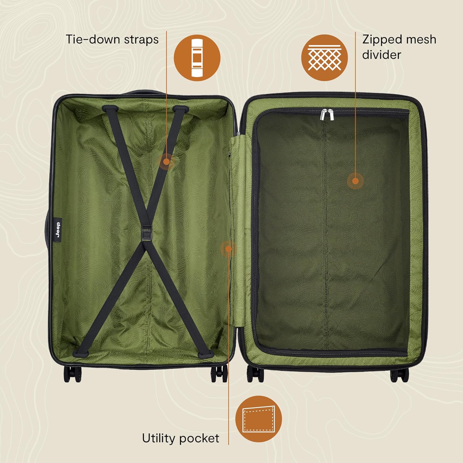 מזוודת ה-29″ של Jeep JH004C מציעה נפח מרשים של עד 120 ליטר בהרחבה, לצד חומר קשיח משולב פוליקרבונט/ABS, גלגלי ספינר כפולים 360°, מנעול TSA ורצועות פנימיות. זהו הפתרון האולטימטיבי למי שמוציא את הקיט מהבית, לוקח את המשפחה והופך כל יעד לחוויה של סדר, נוחות וסטייל.