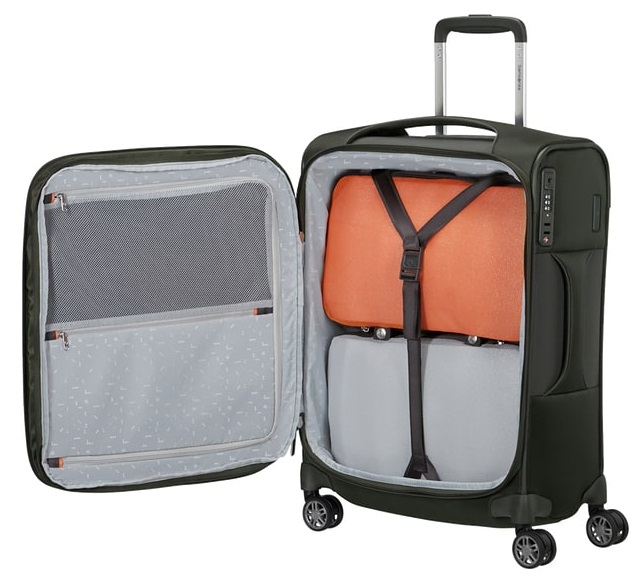 טרולי קומפקטי במידות תקניות לעלייה למטוס (55×40×22 ס"מ) מסדרת Re-Lite של חברת Samsonite. שוקל רק 2.1 ק"ג – קל במיוחד ונוח לנשיאה.