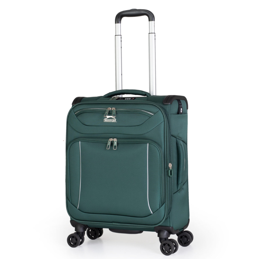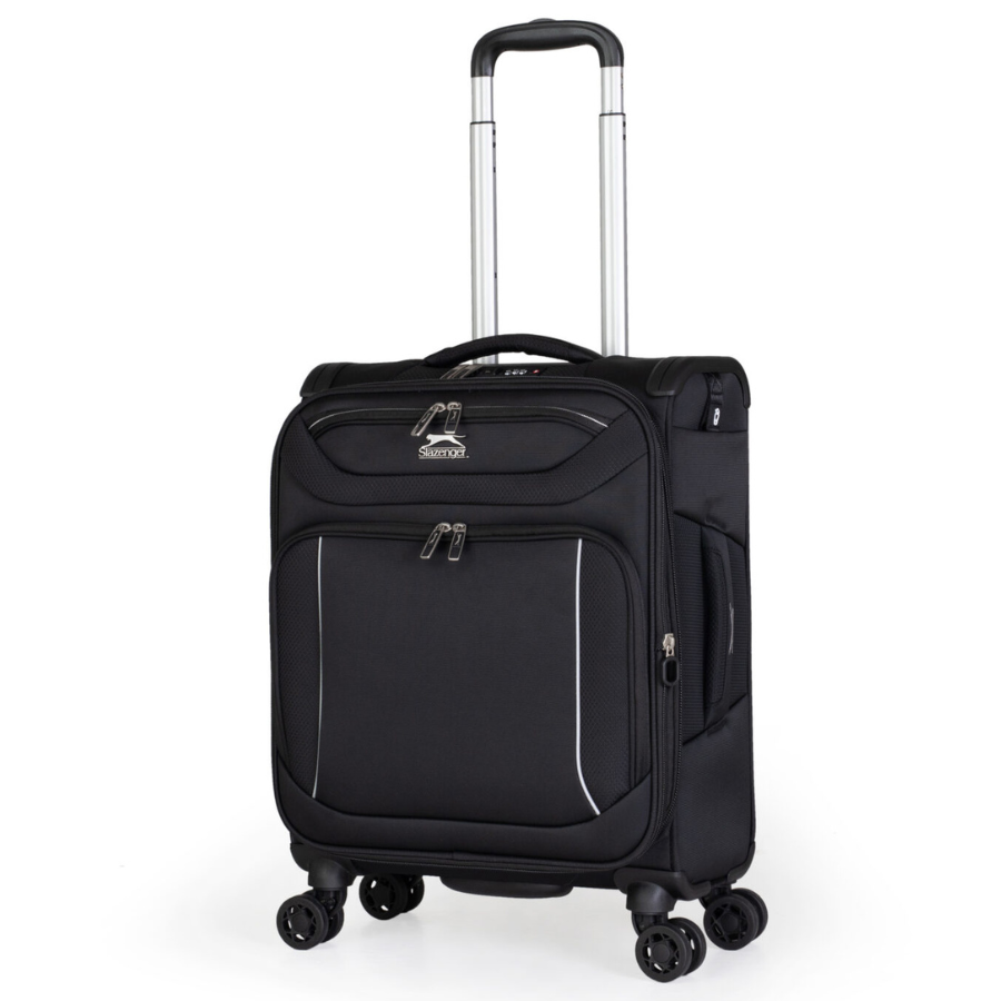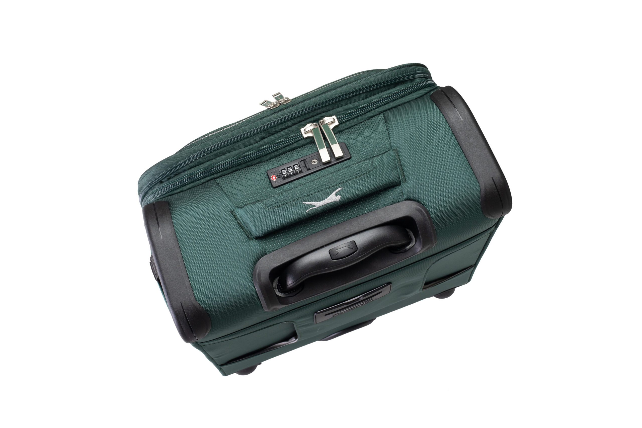מזוודת טרולי עליה למטוס איכותית של חברת SLAZENGER עשויה מניילון בצפיפות 1680D אטום למים, 2 גלגלים גדולים ועמידים לאורך זמן, מנגנון טרולי נשלף מאלומיניום קל וחזק, 2 תאים חיצוניים לאריזה נוחה ויעילה, גב קשיח לשמירה על המנגנון והתכולה הפנימית, הגנות קדר גומי בפינות למניעת שחיקה, ידיות נשיאה מחוזקות ורוכסנים עבים, אפשרות הרחבה ב- 20% נוספים.