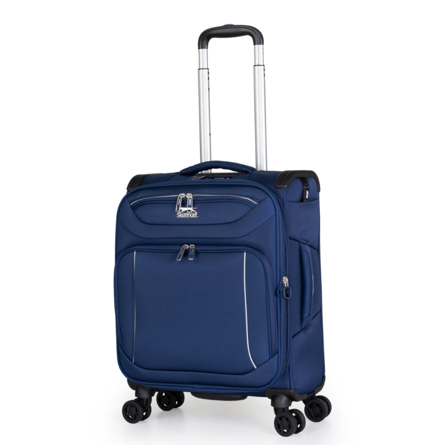 מזוודת בד פרימיום טרולי עליה למטוס דגם Metro Flux מבית המותג האנגלי היוקרתי SLAZENGER מזוודה איכותית במיוחד, בעלת אקסטרה הגנה בחלק העליון והתחתון של המזוודה לשמירה על היציבות והדורביליות. עשויה בד דוחה מים ובלאי, גלגלים כפולים וגדולים לעבירות טובה יותר, ידית טרולי ארגונומית, מנעול TSA, תאים קדמיים גדולים ורוכסנים עבים נגד פתיחה באמצעות חפץ חד. למזוודות 3 שנות אחריות מבית שלזינגר