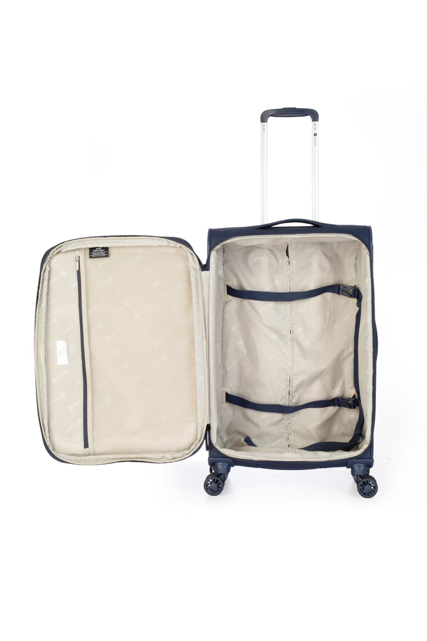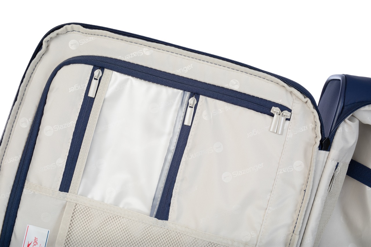 מזוודת טרולי עליה למטוס איכותית של חברת SLAZENGER עשויה מניילון בצפיפות 1680D אטום למים, 2 גלגלים גדולים ועמידים לאורך זמן, מנגנון טרולי נשלף מאלומיניום קל וחזק, 2 תאים חיצוניים לאריזה נוחה ויעילה, גב קשיח לשמירה על המנגנון והתכולה הפנימית, הגנות קדר גומי בפינות למניעת שחיקה, ידיות נשיאה מחוזקות ורוכסנים עבים, אפשרות הרחבה ב- 20% נוספים.