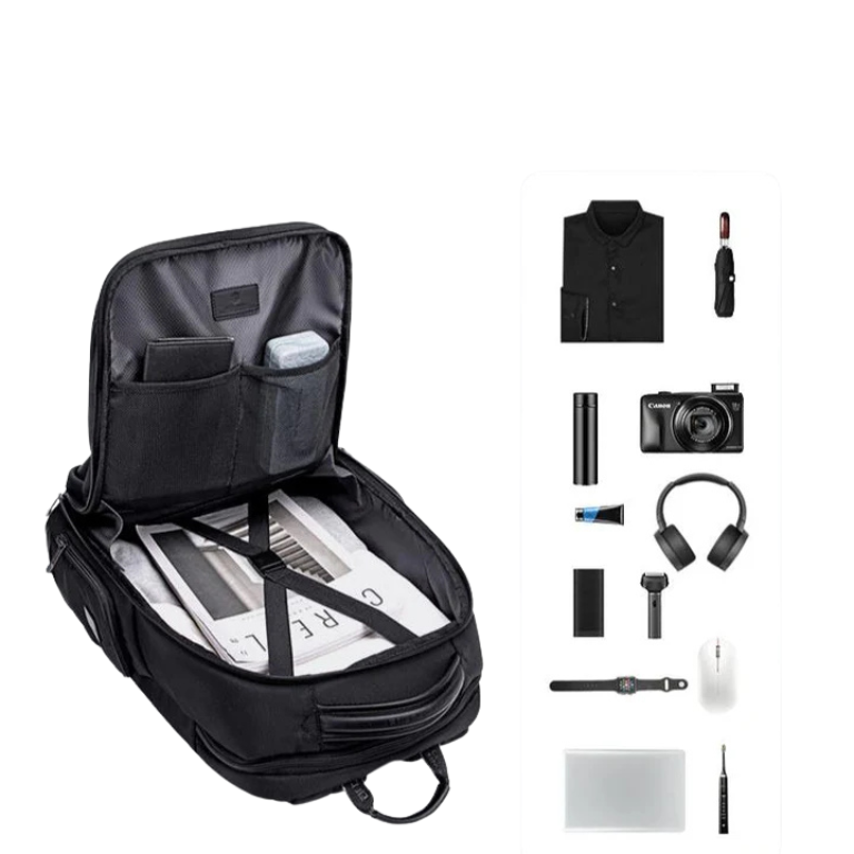 תא מרופד עם קטיפה מונעת שריטות למחשב נייד עד "16 ולטאבלט ,תא נוסף מרווח לשימושים נוספים, + ארגונית, כיס רוכסן קידמי , 2 תאי רוכסן גמישים בצדדים לבקבוק,ידית אחיזה עליונה