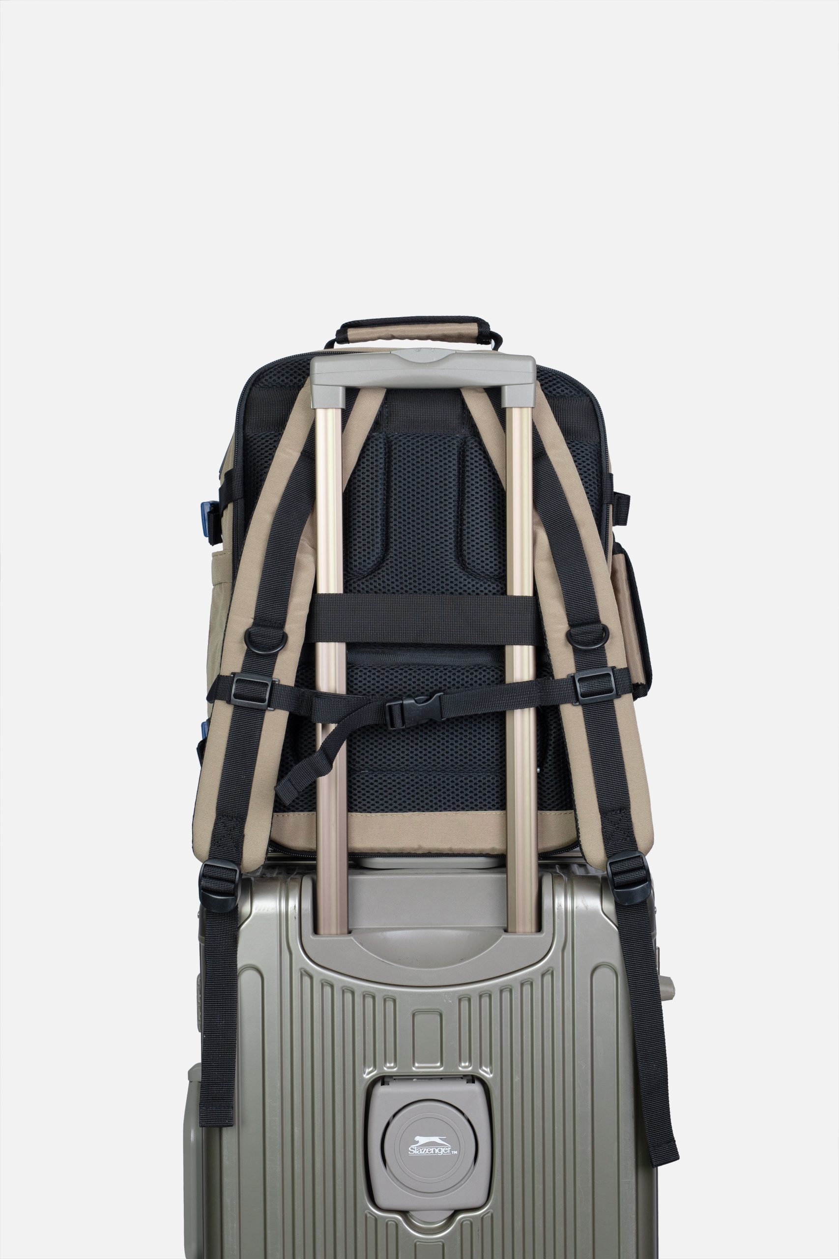 עשוי מבד RPET ממוחזר, קל במיוחד (1.4 ק"ג) ונפח מרשים של 20 ליטר — מתאים לתאי ה־Underseat של Ryanair וכולל תא מרווח לביגוד, כיס קדמי עם ארגון חכם, ושרוול אחורי לחיבור למזוודה גדולה.