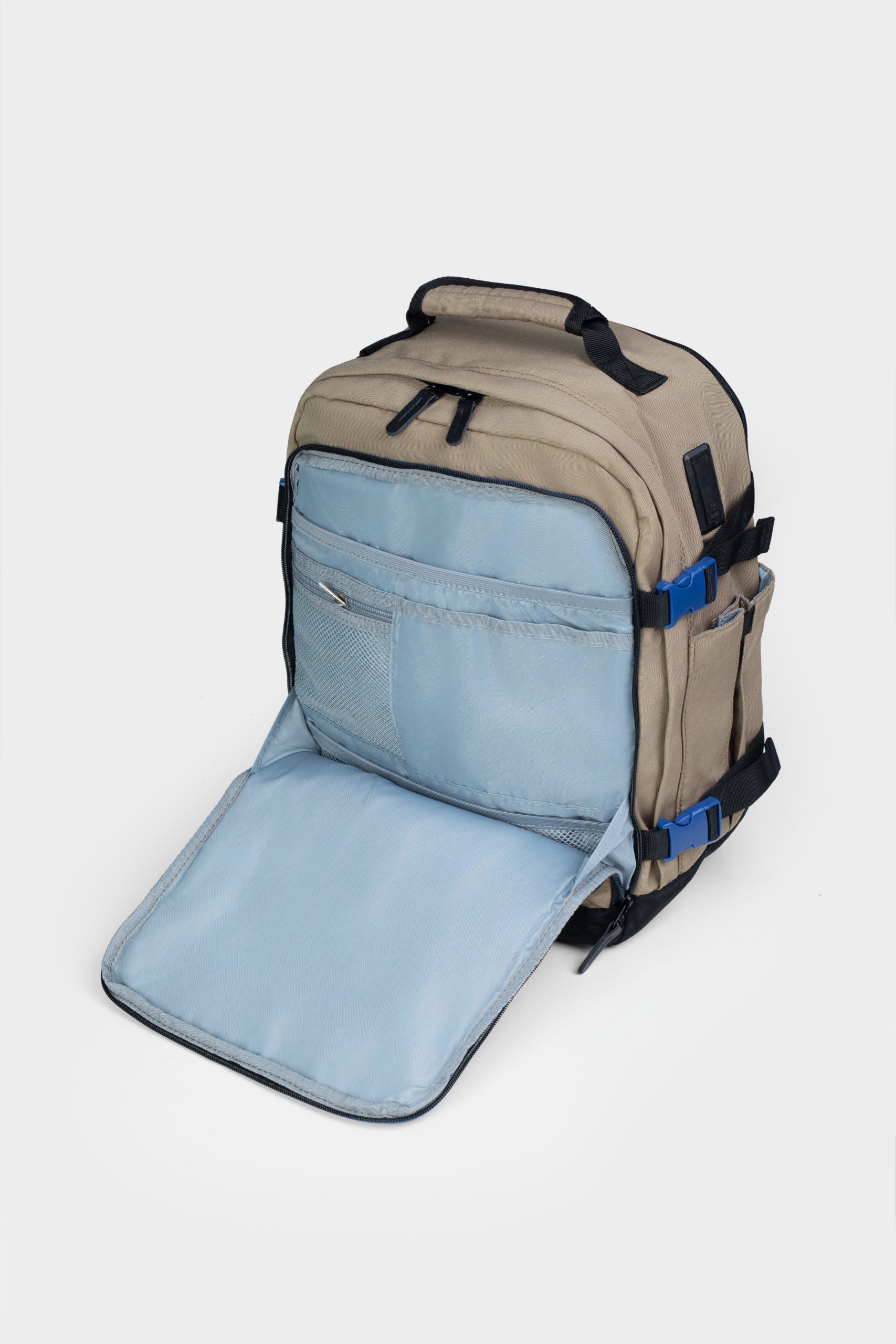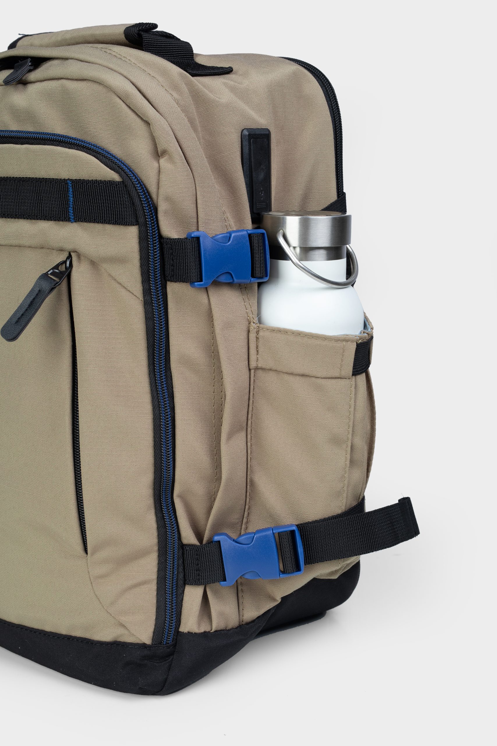 תא ייעודי למחשב נייד 13.3״ , יציאת USB , ארגונית קדמית לגישה קלה לפריטים קטנים, כיסי רוכסן לסוללה ולבקבוק.
